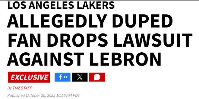 北京时间10月21日,据TMZ体育报道,一名声称被勒布朗-詹姆斯的“决定2”欺骗而损失金钱的湖人队球迷刚刚申请撤回对这位NBA巨星的诉讼。